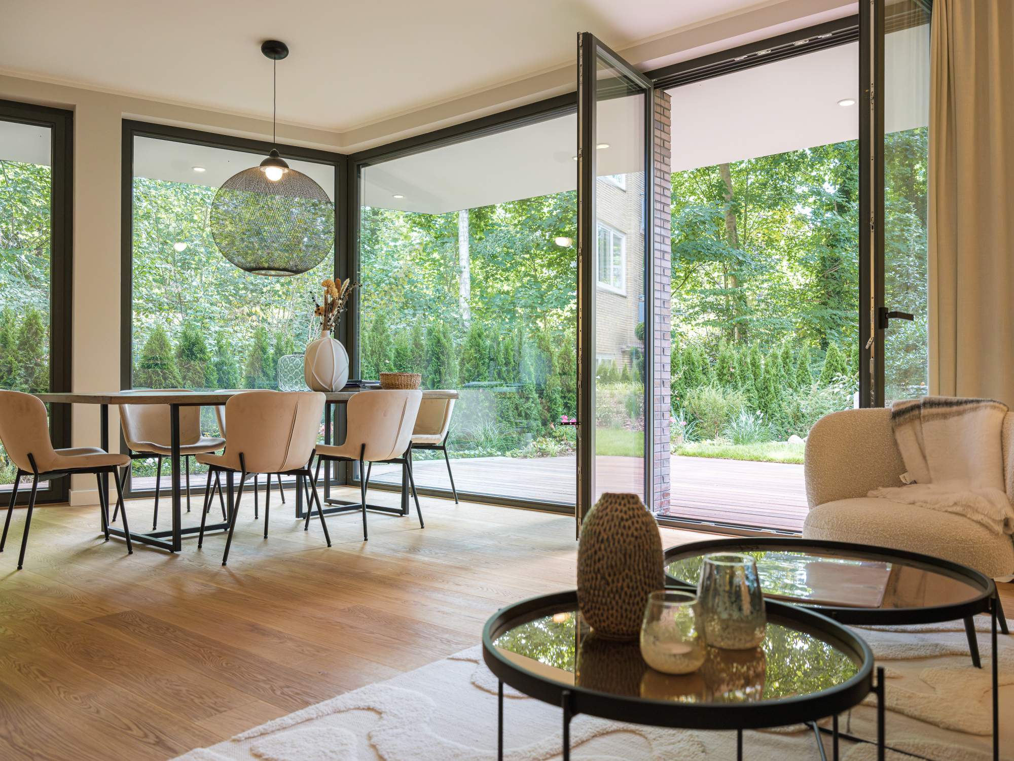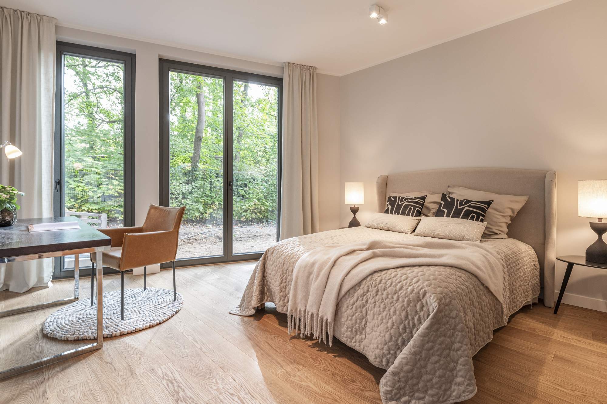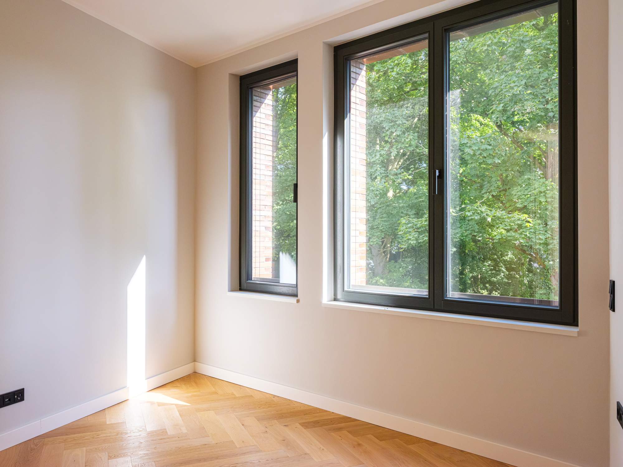 - Raumhohe Innentüren und bodentiefe Holzfenster