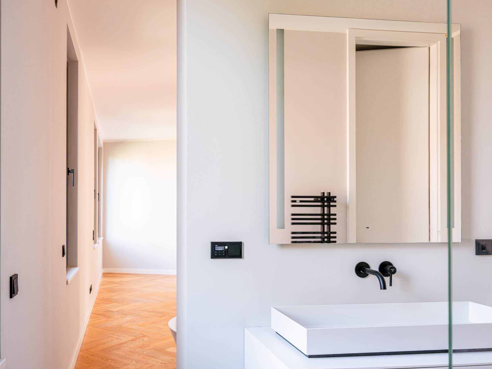- Hochwertige Feinsteinzeug-Bodenbeläge in den Bädern