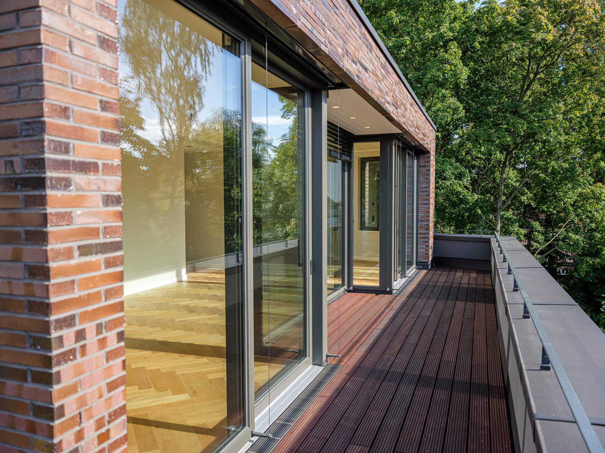 - Massivholzbelag auf den (Dach-)Terrassen und Balkonen