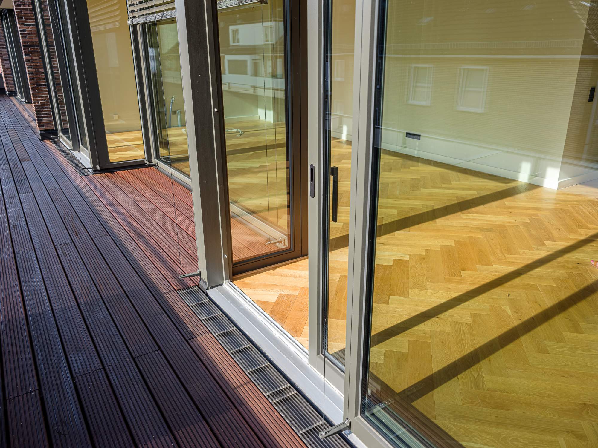 - Massivholzbelag auf den (Dach-)Terrassen und Balkonen